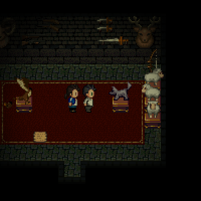 Continue until you reach the 2F passage again. Enter the room of mounted animals on the top-left.