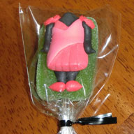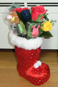 It contains roses of three colors (artificial, of course) and jelly sticks of some familiar characters.