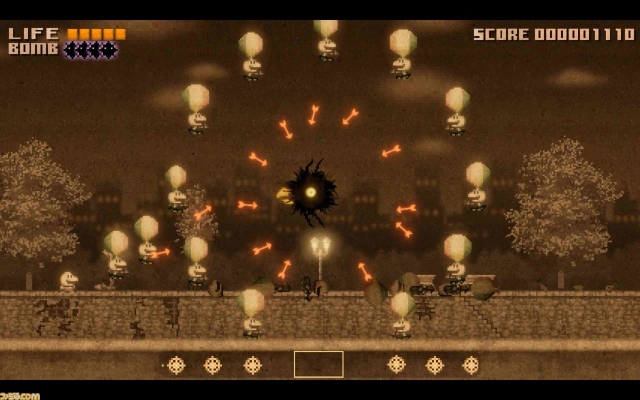 A girl who meets an untimely demise becomes a calamitous black bird and attacks people in this shooter. Features horizontal looping stages and bombs, and addictive to play for high scores.