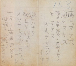 • Kenji Miyazawa's Handwritten Note "Ame ni mo Makezu"