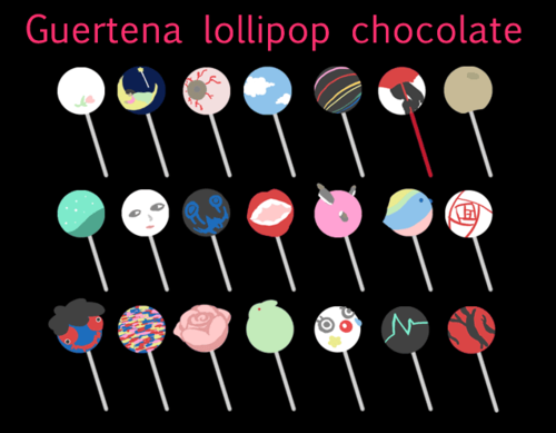 Lollipops with motifs of characters and Guertena pieces from the game.